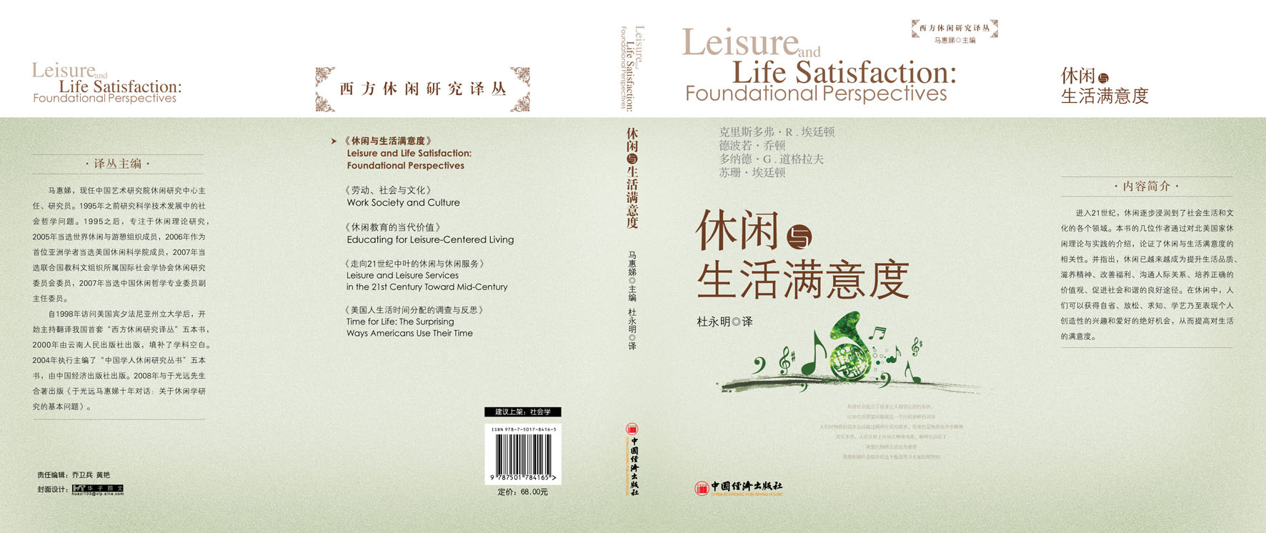 《休閑與生活滿意度》(Leisure and Life Satisfaction: Foundational Perspectives)幾位作者從理論和實(shí)際的結(jié)合方面論述了休閑與生活滿意度的相關(guān)性,指出,當(dāng)今社會,休閑已全面地滲透到社會文化生活的各個(gè)方面,越來越成為提升生活品質(zhì)、滋養(yǎng)精神、改善福利、溝通人際關(guān)系、培養(yǎng)正確的價(jià)值觀、促進(jìn)社會和諧的良好途徑。該書研究視閾寬廣,實(shí)證性強(qiáng),尤其在組織管理、開拓市場、企業(yè)運(yùn)營、休閑產(chǎn)品設(shè)計(jì)、休閑服務(wù)理念等方面有獨(dú)到的見解與論述,使得這本著作呈現(xiàn)出一種典型的多學(xué)科、多角度的特點(diǎn)。同時(shí),書中也為那些有志于進(jìn)入休閑服務(wù)事業(yè)的專業(yè)人士提供了專業(yè)指導(dǎo),對如何把握休閑現(xiàn)象的內(nèi)涵、合理構(gòu)成休閑產(chǎn)業(yè)中的各個(gè)門類、休閑產(chǎn)業(yè)結(jié)構(gòu)、休閑服務(wù)水準(zhǔn)、休閑項(xiàng)目設(shè)計(jì)、休閑產(chǎn)品營銷、休閑管理立法等提供了有價(jià)值的思想。書中引用的許多資料與文獻(xiàn)對中國學(xué)者會大有裨益。