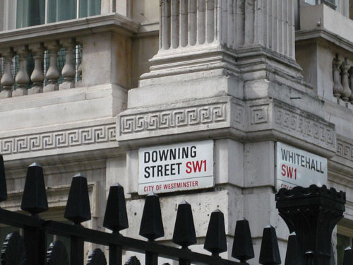 英國首相是代表英國王室和民眾執(zhí)掌國家行政權(quán)力的最高首腦。政治中心便是聞名世界的唐寧街10號(hào)(Downing Street No. 10),距離倫敦特拉法加廣場(chǎng)不遠(yuǎn)。這是一座普通的民宅,面積不大,外觀極其簡(jiǎn)單簡(jiǎn)樸,大門是漆黑色,門上鑲嵌一個(gè)“10”。很難相信這就是創(chuàng)造“日不落帝國”神話的首相們起居與處理國事的地方。事實(shí)上,200多年來,唐寧街10號(hào)一直是英國政府做出重大決定、制定政策和舉行改變世界的會(huì)議中心。