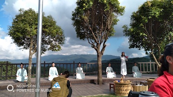 勐庫(kù)大雪山山頂,海拔大約3200米,一座沉睡了億萬年的山峰,那兒,矗立著2700年壽長(zhǎng)的茶樹。愛茶的人都想拜見其尊容,領(lǐng)略其神圣與神性。活動(dòng)期間,幾位長(zhǎng)者跋山涉水歷經(jīng)多時(shí)已接近這株樹神,但是,決定“望而止步”。問其原因,答道:人當(dāng)有舍、有得。舍去對(duì)樹神的煩擾,得到的是內(nèi)心的安寧。“茶是心故鄉(xiāng)”呀!
