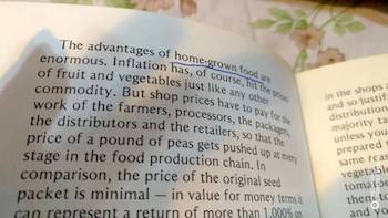 馬喬里還找來了另外幾本書,其中一本是The Complete Urban Farmer: Growing Your Own Fruits and Vegetables in Town。并把這本書送給了我,我在閱讀中發(fā)現(xiàn)了“Home Grown Food”這個用語。我不確定這是不是最早的出處。這本書出版于上個世紀(jì)七十年代。我在這本書的參考資料中發(fā)現(xiàn)了更多的有關(guān)這個領(lǐng)域的文獻(xiàn),出版的年代都很遠(yuǎn)。這是一本實用性很強的書,主要指導(dǎo)人們?nèi)绾畏N植自己的“菜園子”、種植哪些蔬菜水果、如何儲存多余的果實等等。但還是讓我有許多收獲。我在回程的飛機上基本看完,也做了許多標(biāo)注。極其遺憾的是,該書竟遺忘在了飛機上。
