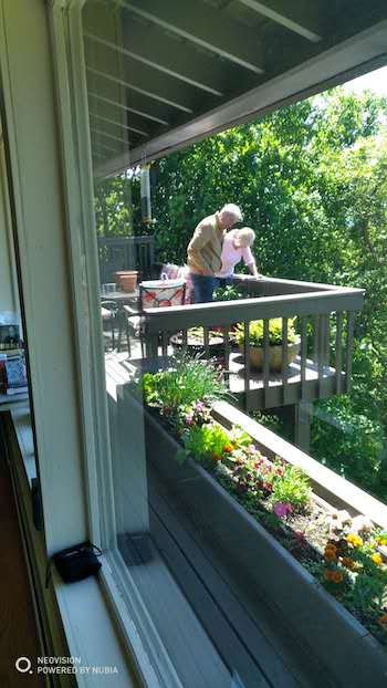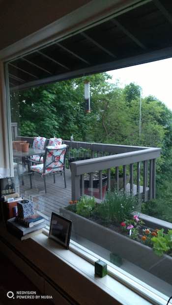 我來這兒,陽臺是我們讀書、聊天、小憩的重要場所,也是最接近自然的地方。馬喬里和她的丈夫邁特每天下午品著威士忌,我飲著中國茶。時不時我也會逗悶子:“沒落的資本主義正在摧毀人的革命意志”。她們便會哈哈大笑起來。