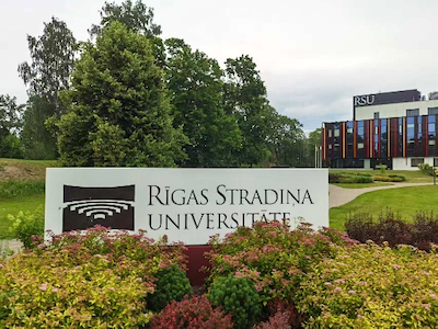 (Rīga Stradi?? University座落于綠色植被和大樹的環(huán)境之中)