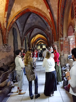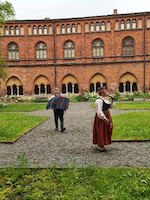 大會開幕式的前奏(社交)在前一天晚上的里加古城有著一千余年歷史的DOME修道院舉行,新朋舊友在此相聚。當?shù)亟M委會以拉脫維亞人傳統(tǒng)的待客形式——伴著悠揚的手風琴樂曲和穿著民族服飾的年輕女子,翩翩起舞。熱情地邀客人們共舞。因為當時下著雨,這些活動不得不由修道院中心草坪改為在廊道內。但并未影響整個活動呈現(xiàn)的簡潔而熱烈、浪漫與輕松、自然又友好的氣氛。